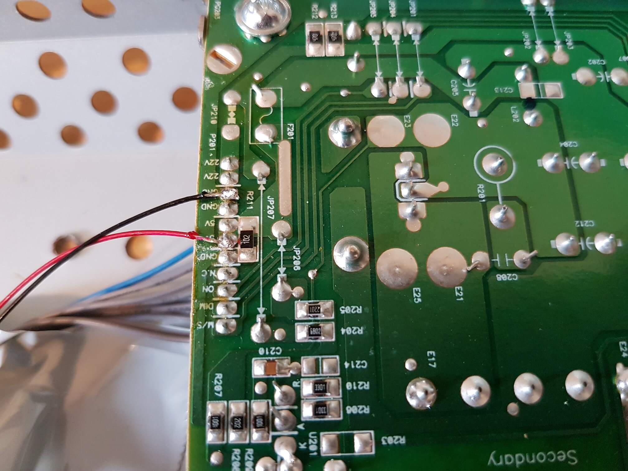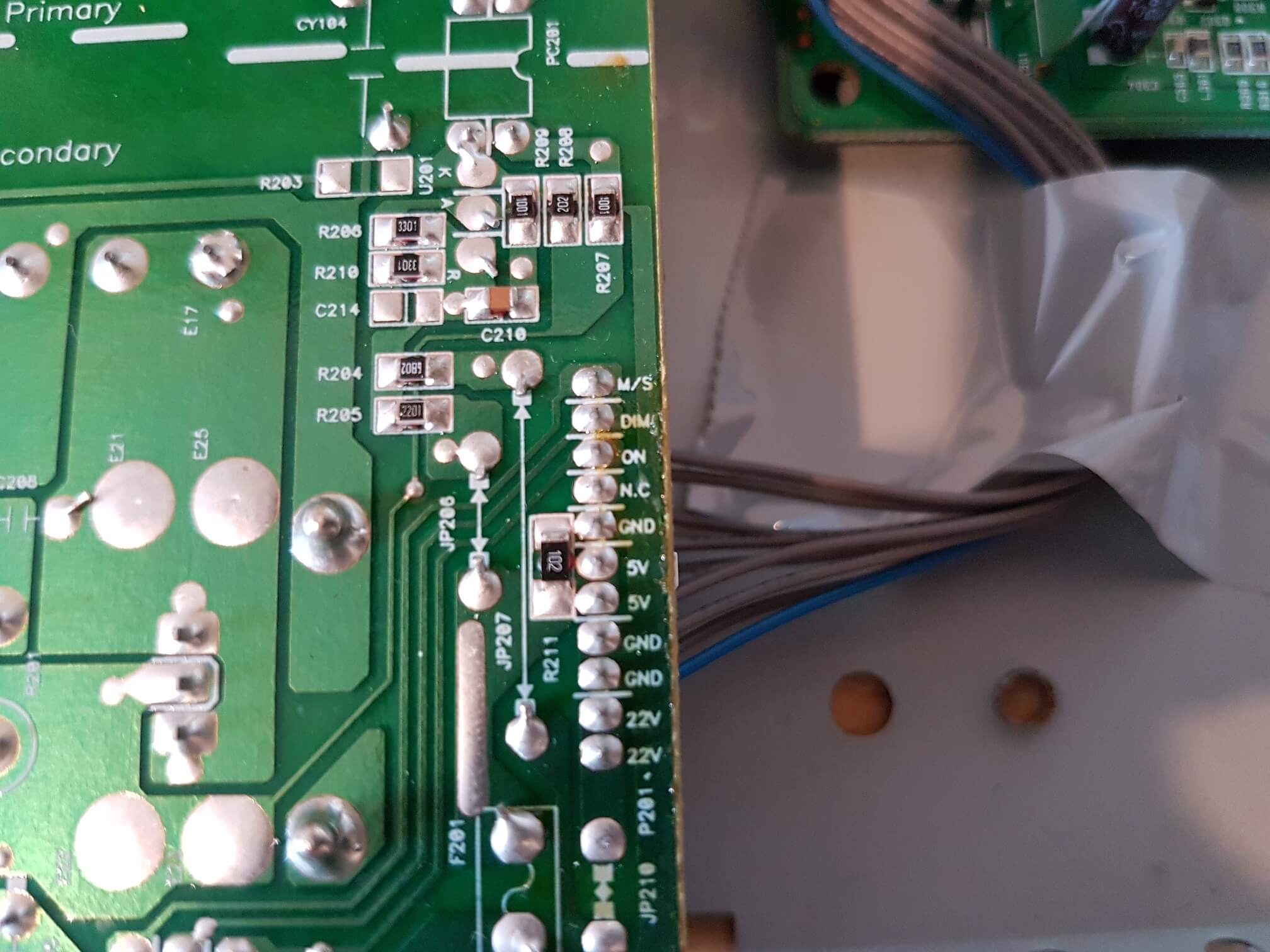 I spotted in one of the posts above that they had taken 5v from the monitor power supply board - I figured there must be a 5v rail on mine somewhere so some more dismantling was required. I was preparing myself for spending a good chunk of time trying to identify a 5v rail, but when i got the plastic casing off I was greeted with this: