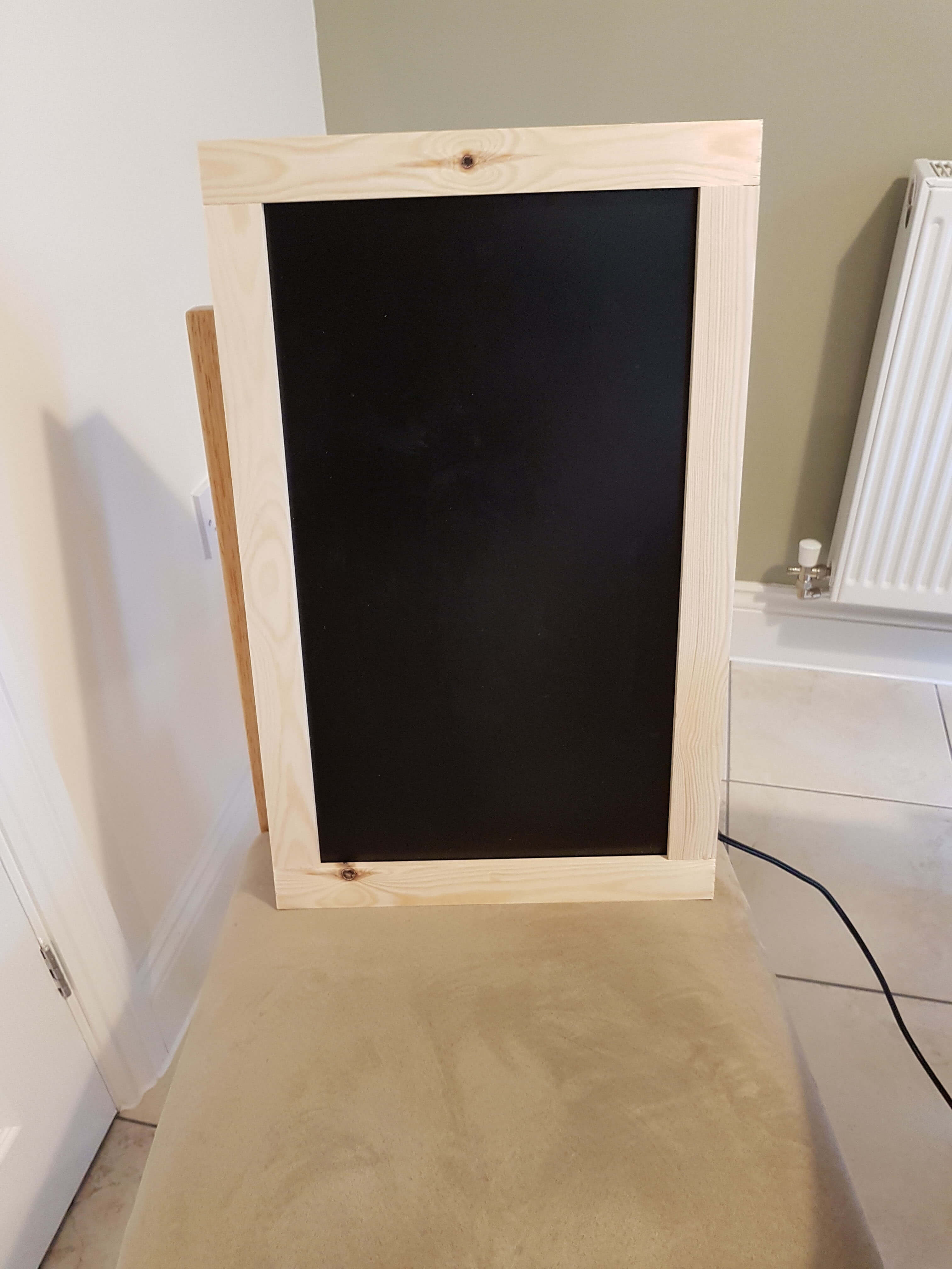 I’ve painted the frame, and hung it on the wall now. Here are a few more photos of it in action. You may also spot my method of hanging it – some wire between two loops on the inside of either edge. That then hooks on to two giant picture hooks on the wall.
