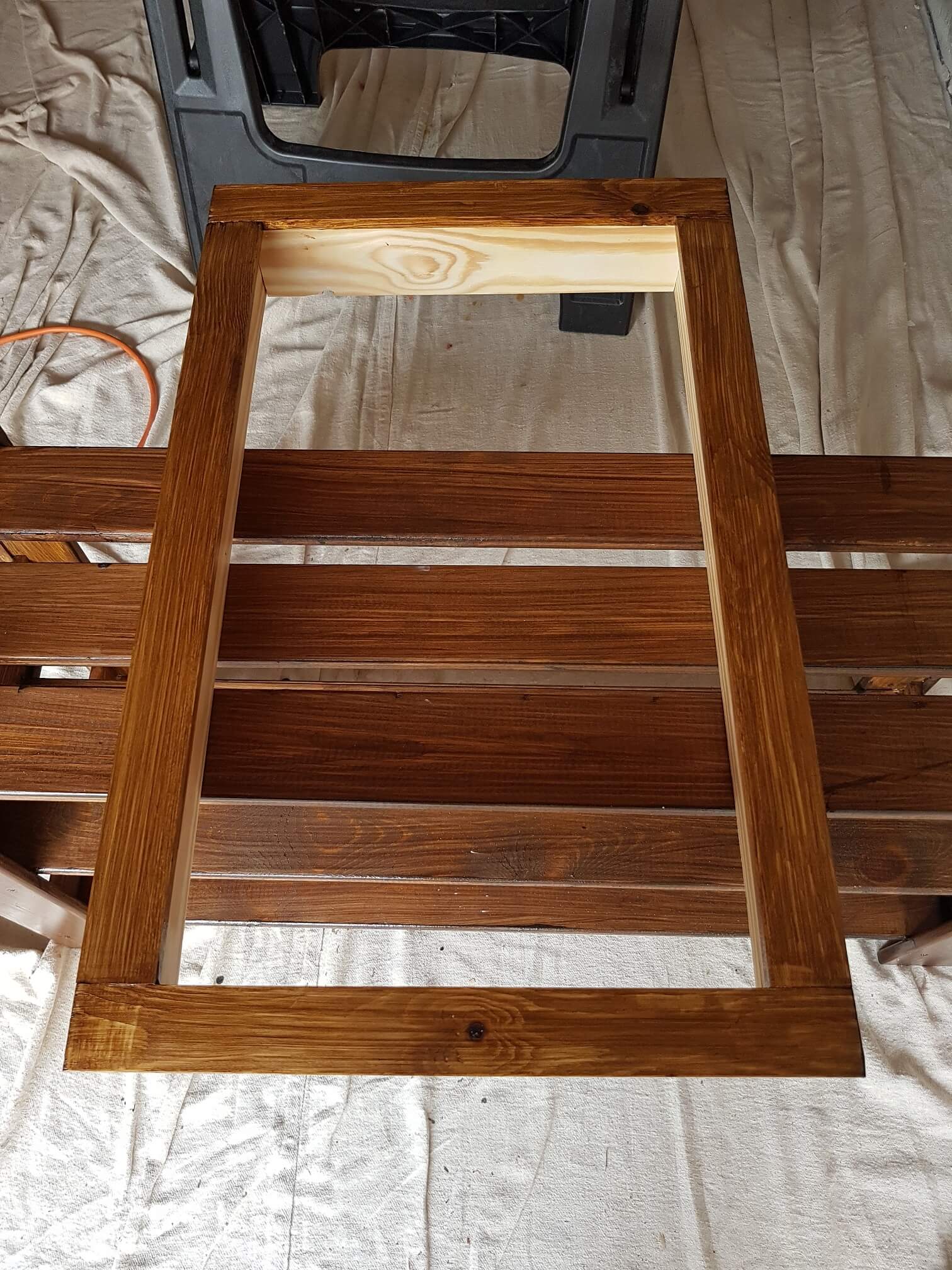 Originally I was going to have nice mitre cuts for the corners, however it turns out I also lack the nescessary tools and/or skill to make accurate 45 degree cuts, so I changed my mind and instead had the edge peices butt up against each other at 90 degrees. It doens’t look as nice, but better than having gaps I think.